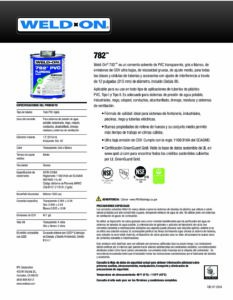 Home / Brands / Weld-On® Plumbing Cements / Plumbing Cements / Weld-On® PVC Cement / Pro Plumbing-Grade PVC Cement / 782™ PVC Plumbing, White, Heavy-Bodied, Medium-Setting / 782 Data Sheet Spanish